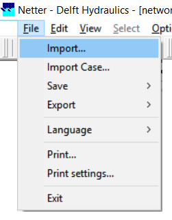 - Kies in NETTER (de kaartmodule van SOBEK) de menu-optie <File> – <Import> en wandel naar de uitvoermap van Catchment Builder, deelmap Topo.