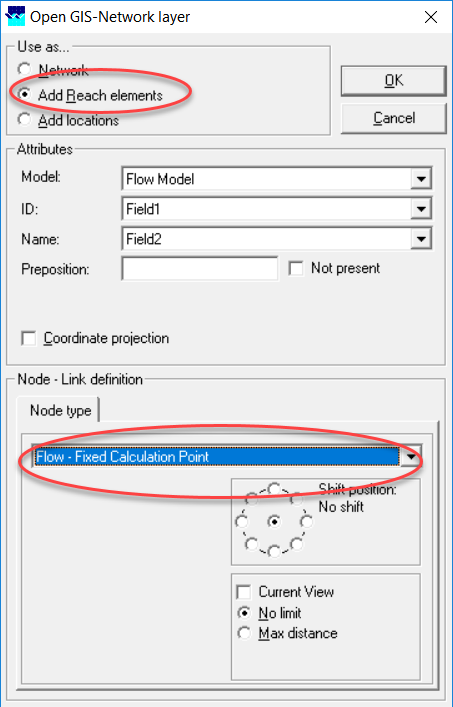 - Kies knoptype “Flow – Fixed Calculation Point”
