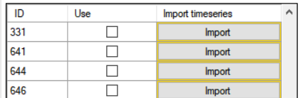 Wanneer een tijdreeks succesvol is geimporteerd, verandert de tekst op de button in <OK> en wordt de omlijning groen van kleur.