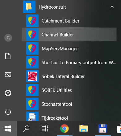 Het programma Channel Builder kan na de installatie worden gevonden in het startmenu onder Hydroconsult.