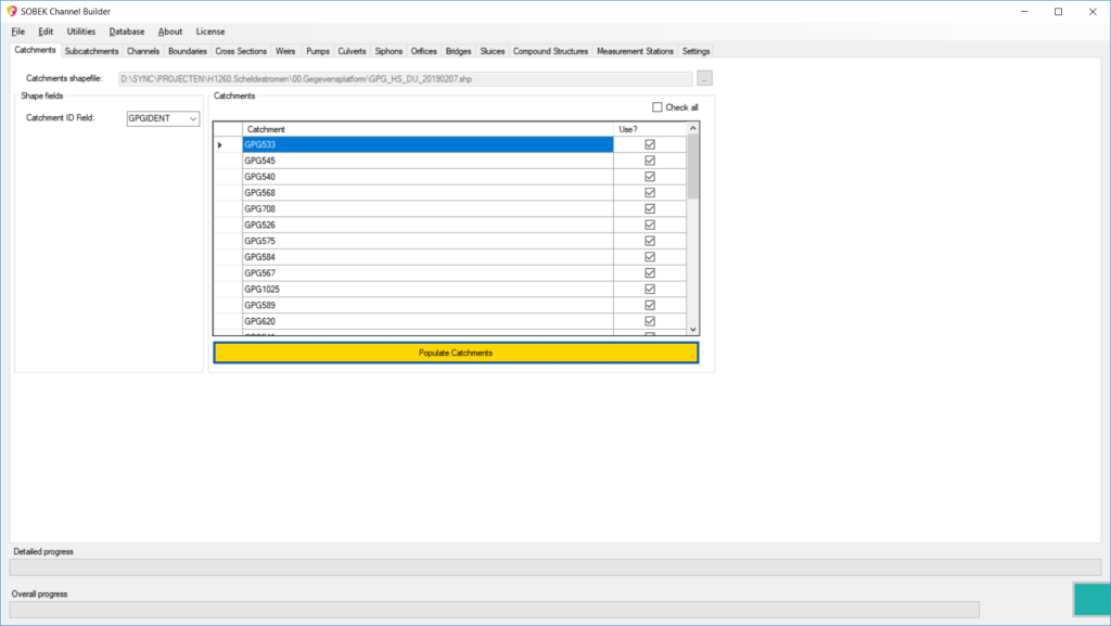 - Klik tenslotte op <Populate Catchments> om de selectielijst te vullen;