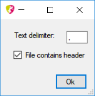 Klik op de button <..> om het CSV-bestand te selecteren. Er verschijnt een popup waarin moet worden aangegeven of het bestand een kop (header) bevat en welk leesteken als getalsscheider wordt gebruikt.
