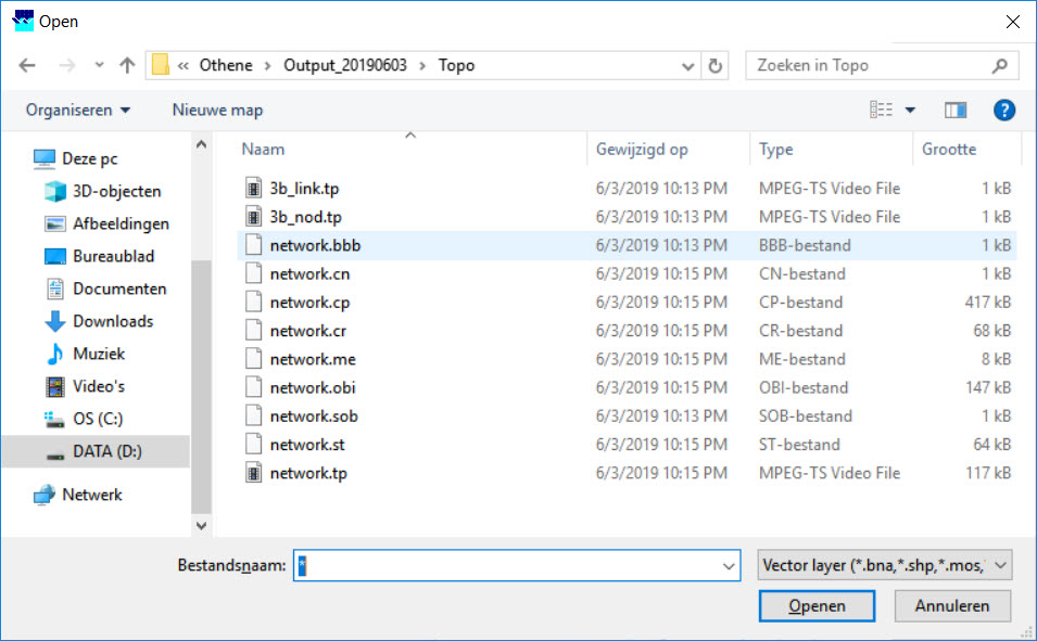 - Kies het bestand ‘network.sob’ en klik op <Openen>.