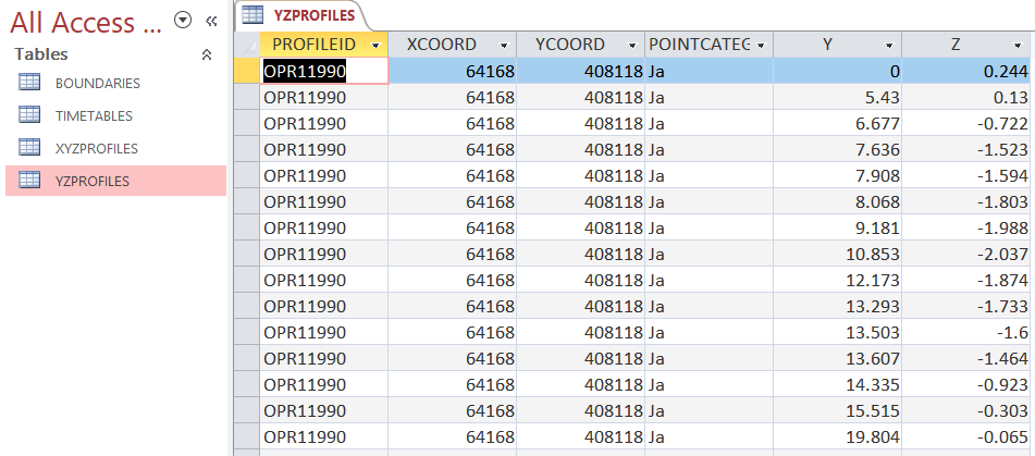 Wanneer we vervolgens een blik werpen in de Access-database, zien we dat er data is toegevoegd aan de tabel YZPROFILES.