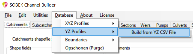 Kies uit het menu de optie Database – YZ Profiles – Build from YZ CSV File. Zorg er wel voor dat er al een geldige connectie met de database is. Dit kan door al vooraf een XML-bestand te importeren of door onder Settings het pad naar de database (.mdb) op te geven.