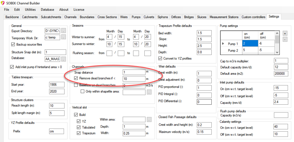 In Channel Builder is het mogelijk om takken automatisch aan elkaar te koppelen wanneer de uiteinden ervan binnen een bepaalde afstand van elkaar liggen. Deze afstand is door de gebruiker op te geven in het programma onder Settings.