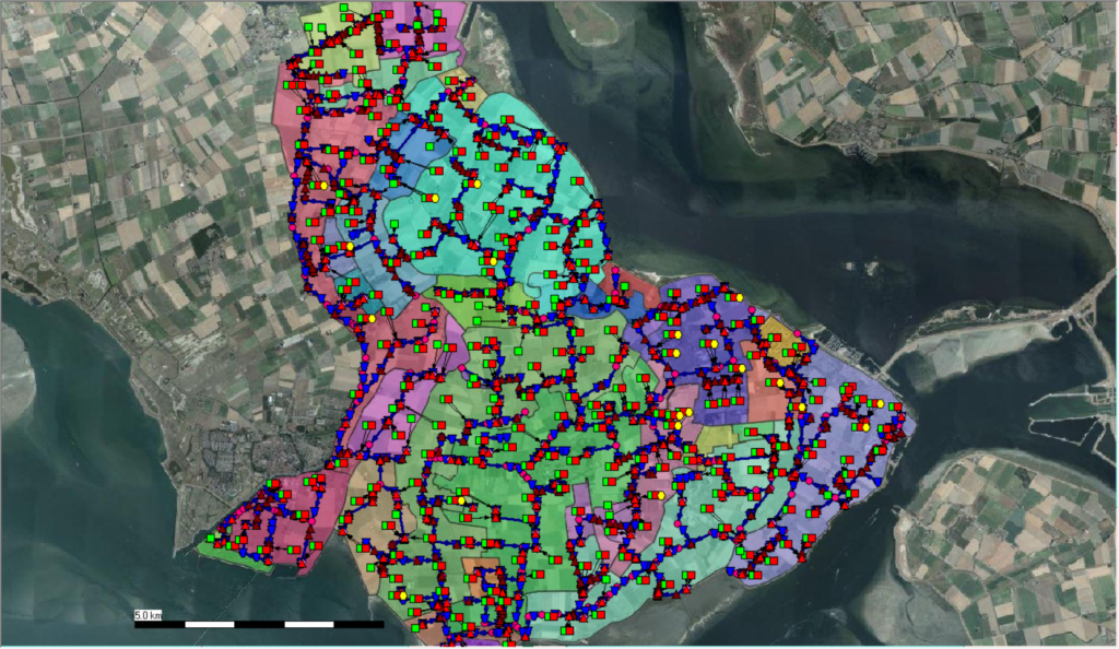 Wanneer we inzoomen zien we dat ieder gebiedje niet alleen is uitgerust met RR-knopen, maar ook met een dummytakje ten behoeve van de waterbergende capapaciteit.