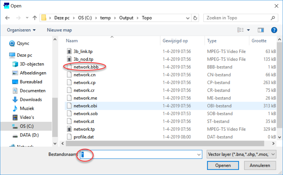 - Let op: het bestandstype .bbb wordt niet standaard herkend door NETTER dus het is zaak om in het selectievak even * te typen, gevolgd door <Enter> om het bestand zichtbaar te maken.
