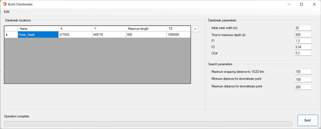 HydroToolbox bevat nu een functionaliteit waarmee de gebruiker grotendeels automatisch een dambreak in D-Hydro kan aanbrengen.