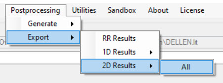 - Kies uit het menu de optie Postprocessing – Export -2D Results – All